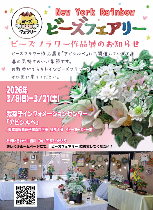- 2025.01.08 3月9日(日)~15日(土)「ニューヨークレインボー ビーズフェアリー 4教室合同 ビーズフラワー作品展」を開催致します。